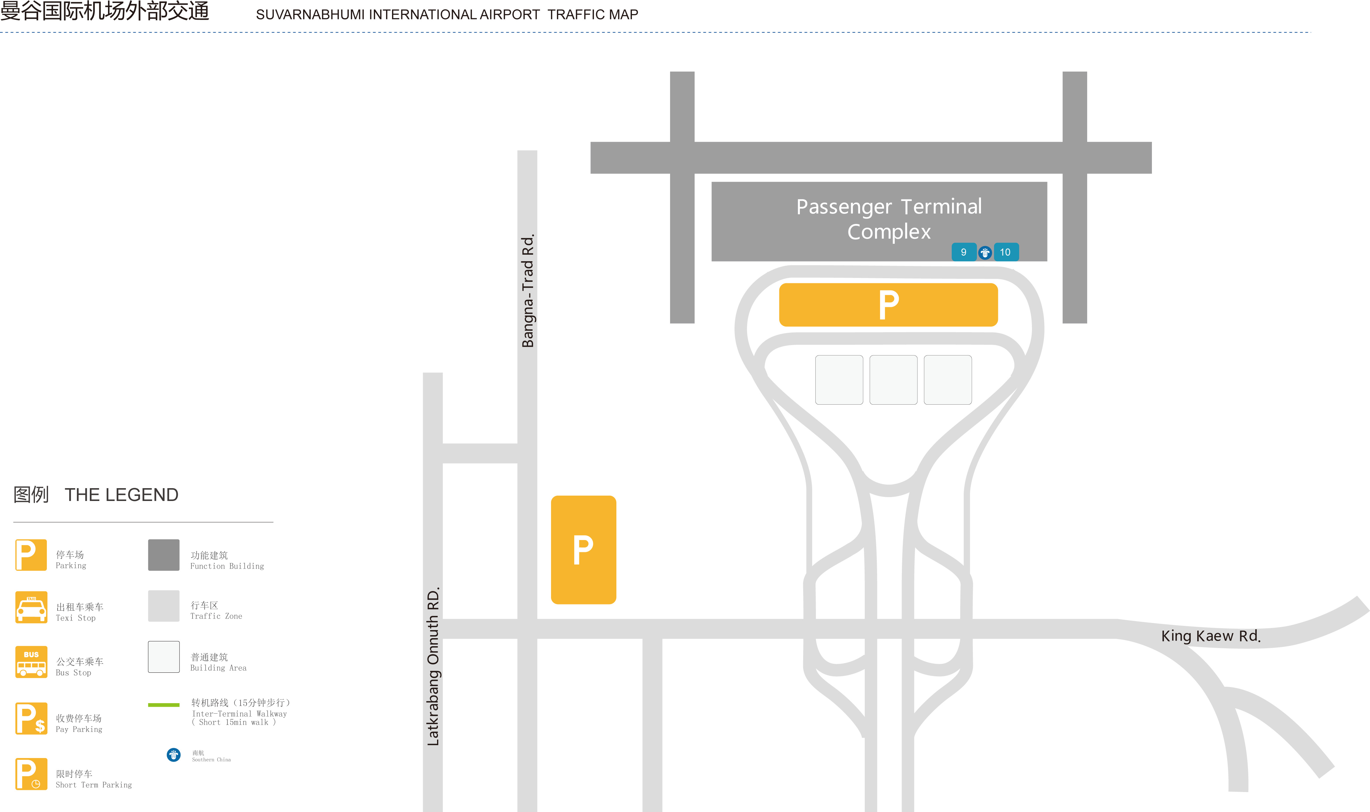 二層(到達廳):國內及國際達到,服務設施有辦理入境檢查,國內、國際旅客行李提取大廳,旅行、酒店資訊中心等。南航在曼谷的行李查詢業務由泰航代理,如有行李問題請諮詢泰航行李查詢處。