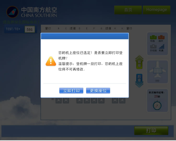 第二步:核对您的航班信息,选择自助座位: