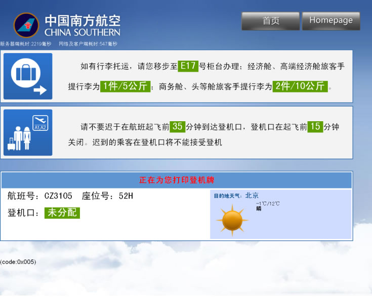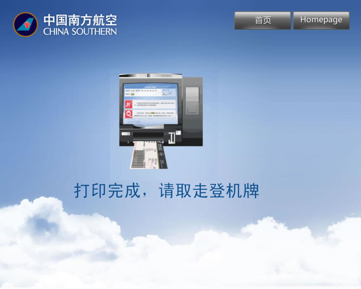 第四步:系统打印登机牌,办理完成:
