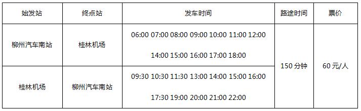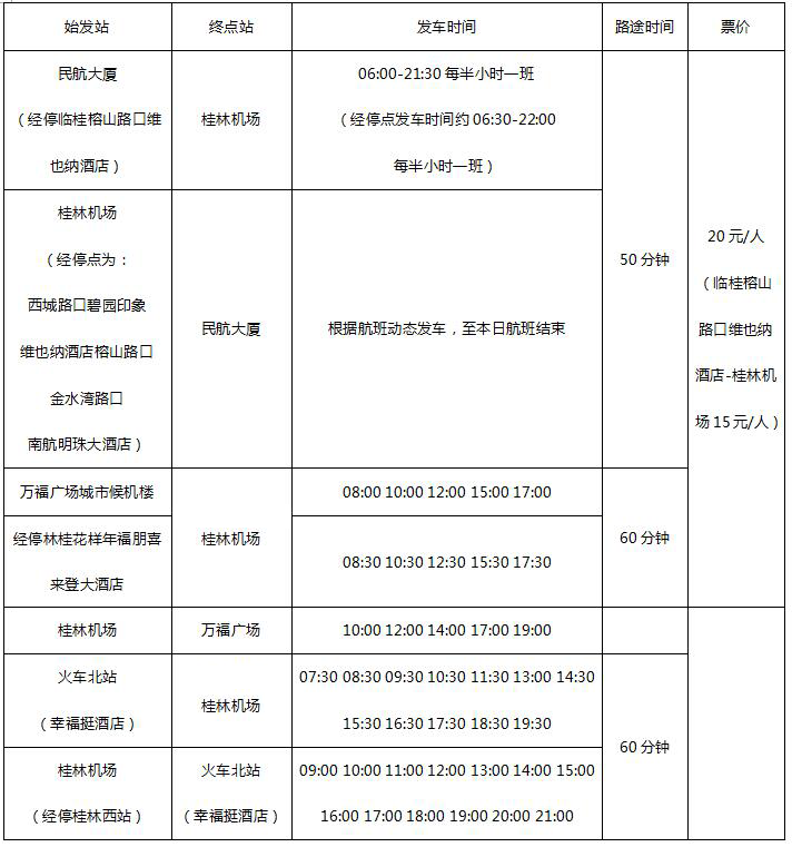 桂林机场民航大巴线路时刻一览表