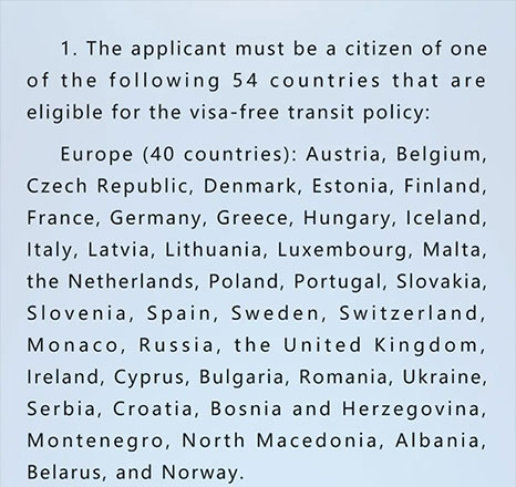 Conditions for Foreign Nationals Applying for the 240-Hour Visa-Free Transit Eligibility Click to view