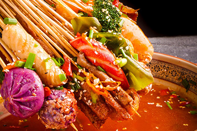Sichuan hot pot is famous for its numbingly spicy broth filled with meats and vegetables. The combination of Sichuan peppercorns and chili creates a rich, flavorful experience. For those who can't handle the heat, there are milder options with mushroom or tomato-based broths, offering an equally delicious alternative.