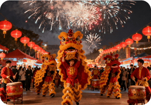 Experience the lively atmosphere of China’s Spring Festival. Enjoy thelively fair and a stunning fireworks show. Feel the magic of the celebration.