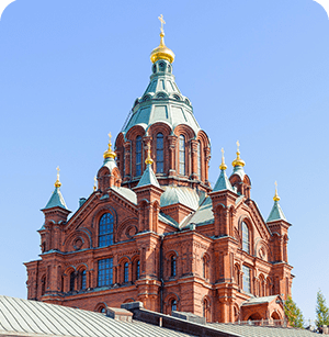 烏斯本斯基主教座堂是赫爾辛基最具標誌性的地標之一,也是西歐最大的東正教堂。它坐落于芬蘭赫爾辛基卡塔亞諾卡半島,於1868年竣工,見證了芬蘭與俄羅斯的歷史淵源。教堂以其紅磚外牆、綠色屋頂和金色洋蔥圓頂聞名,這些元素在東正教傳統中象徵神聖之光。如今,這裡仍是活躍的宗教場所和重要的文化景點,完美融合了東方與西方的建築風格,展現了赫爾辛基獨特的建築風貌。