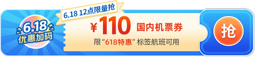 *认准“618国际及地区特惠”标签,不得自愿变更、签转、退票,价格不含税,以实际查询为准。