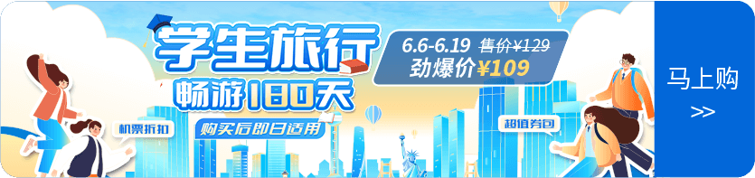 购票日期:6.6-6.19 航班日期:即日起-12.31