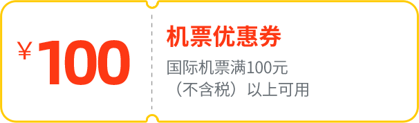 2.100元机票优惠券仅限购买票面价格(不含税费)为100元及以上的机票时使用。