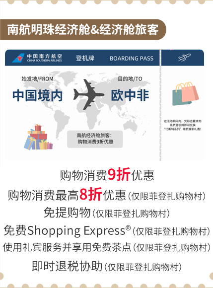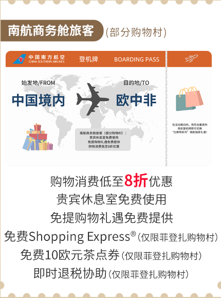 凭南航登机牌, 立享欧洲比斯特系列购物村专属折扣