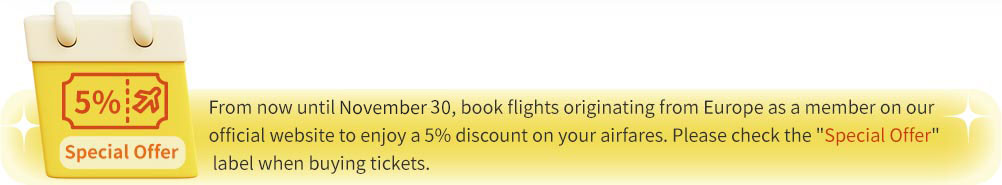 - • Flight Information: Please note that aside from certain dates, the flight availability, route options, and pricing are subject to inquiries and bookings.