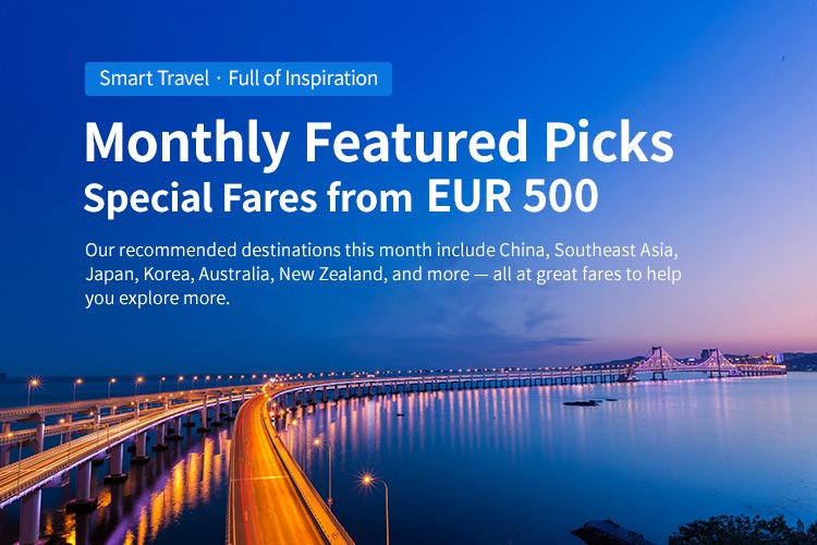 Over 50 flights per week from Europe, connecting popular destinations in China, Southeast Asia, Japan, South Korea, Australia, New Zealand, and more. Convenient transfer options make it easy for you to reach destinations around the globe!