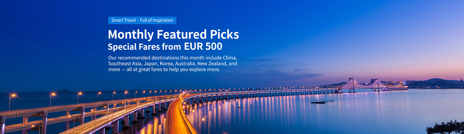 We select quality routes and popular destinations every month, paired with exclusive fares to offer you an efficient, convenient, and reliable travel option.