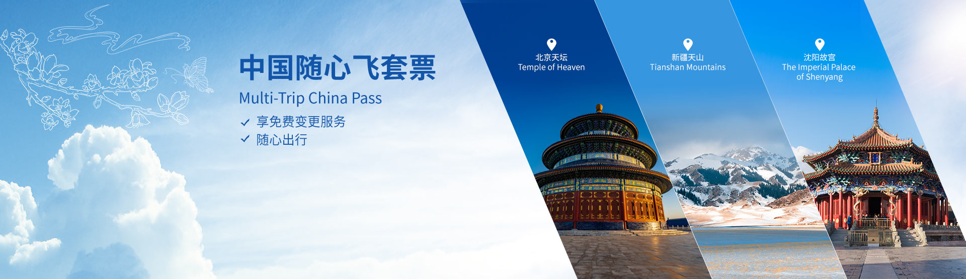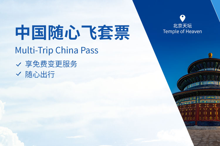 「中国随心飞套票」南航与您畅游中国。只需预约首次出行航班,剩余行程随心而行,未使用的往返票更可享1次免费变更服务!数量有限,售完即止。