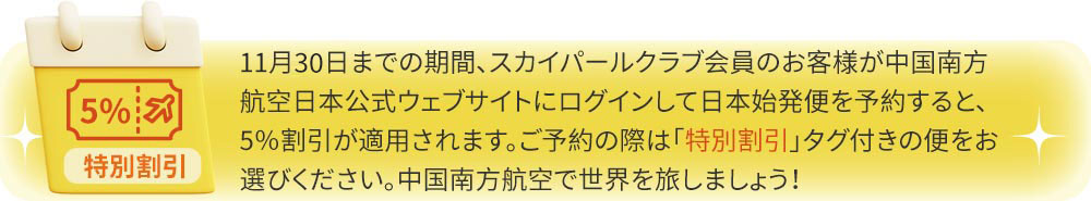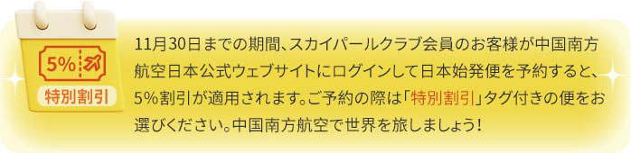 日本始発路線特別セール、スカイパールクラブ会員限定5%割引!