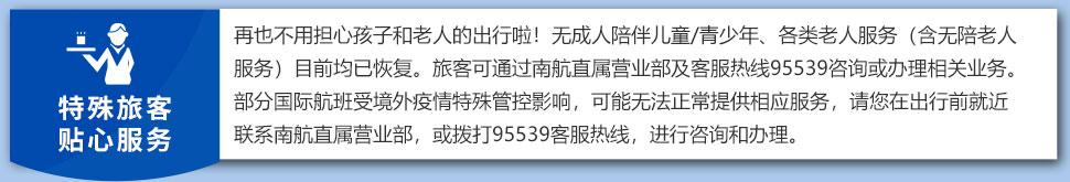 *具体出入境政策请提前咨询中国出入境管理部门,更多有关中转流程和服务的信息,请前往南航官网查看: