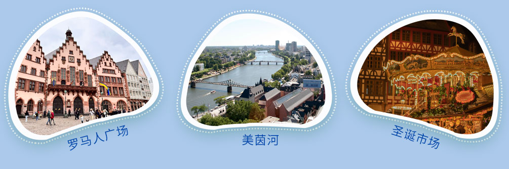 法兰克福(Frankfurt):法兰克福是德国的金融中心,也被称为“欧洲之桥”。这座现代化城市拥有古老的建筑和现代化的高楼大厦。在市中心,可以参观圣巴特洛缪大教堂和市政厅等历史建筑。此外,法兰克福还有丰富的文化活动和博物馆供您游览。