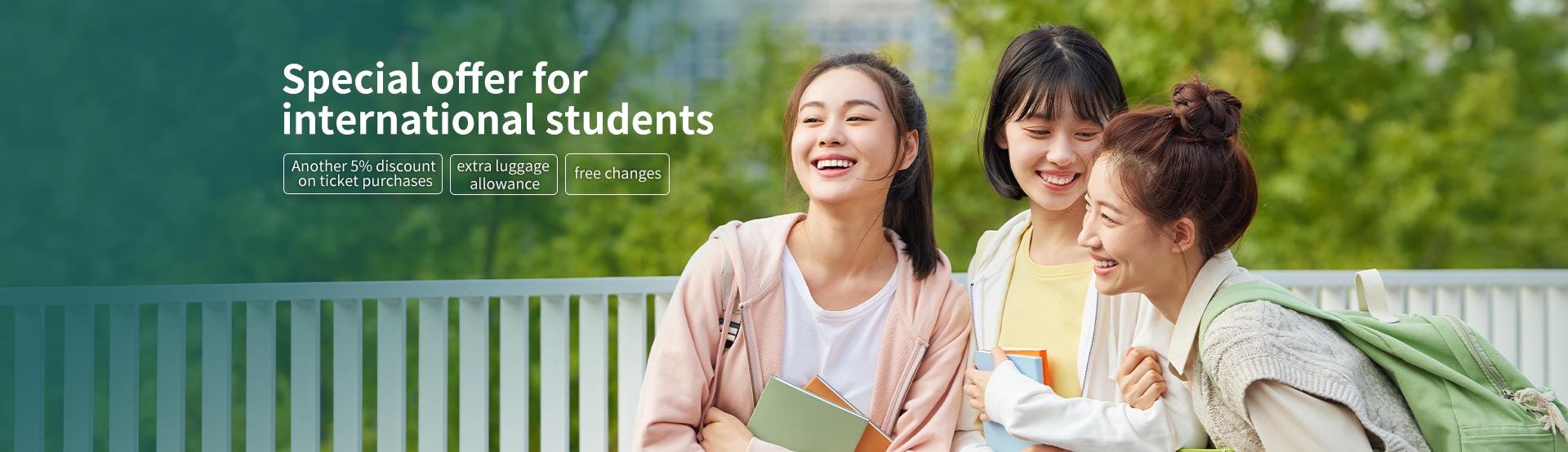 *The above benefits are only applicable to international students whose place of enrollment and country of nationality are different. They apply to trips and designated flights and fare classes between your place of nationality and the place where you study abroad. The fare, luggage allowance, and refund/rescheduling rules shall be subject to the information on the ticket purchase page.
