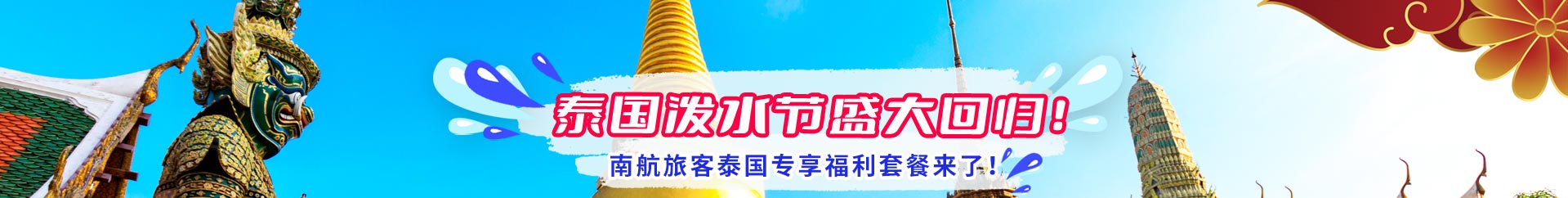 每年4月13-15日是泰国传统假日 “泼水节” ,相当于 “泰国的过年”。为迎接这一盛大隆重热闹的节日,南航曼谷营业部与本地企业合作,特为南航旅客推出“南航旅客专享福利套餐” 。
