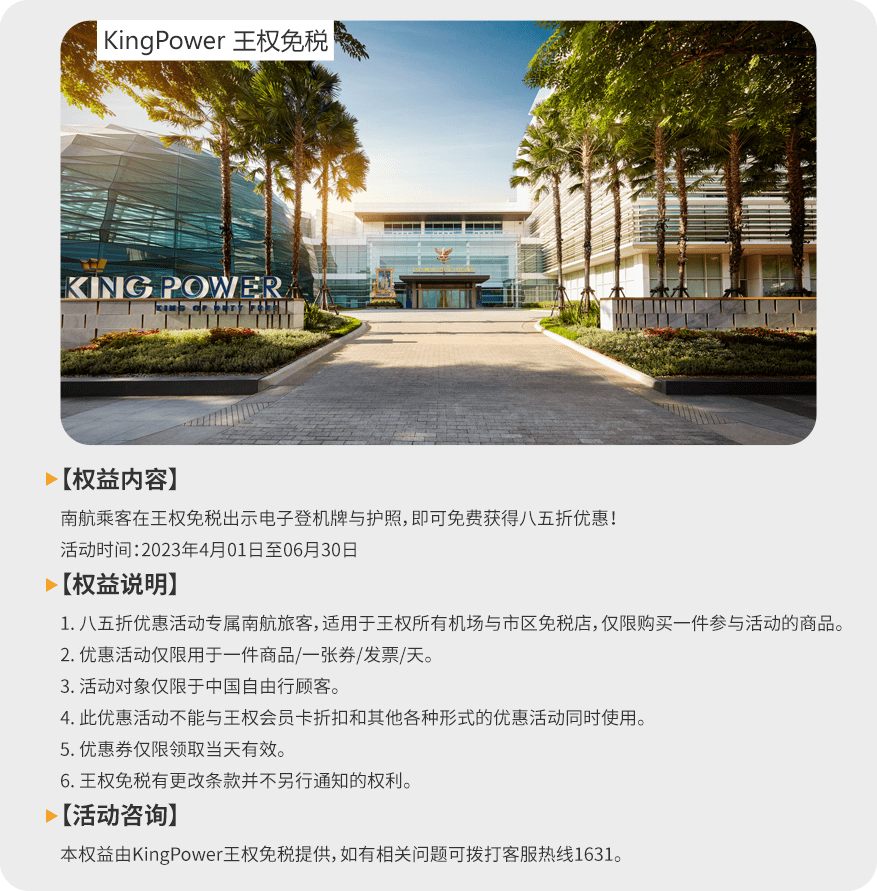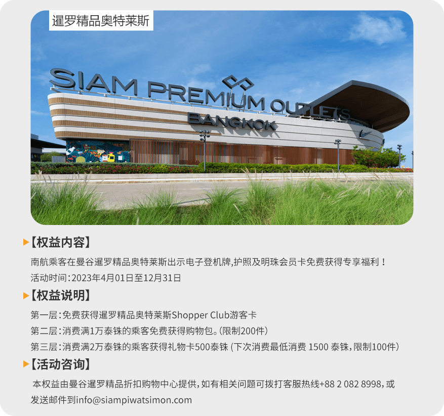 如果您是持有中国护照,且购买了南航中国-泰国机票的旅客,您可享受以下福利: