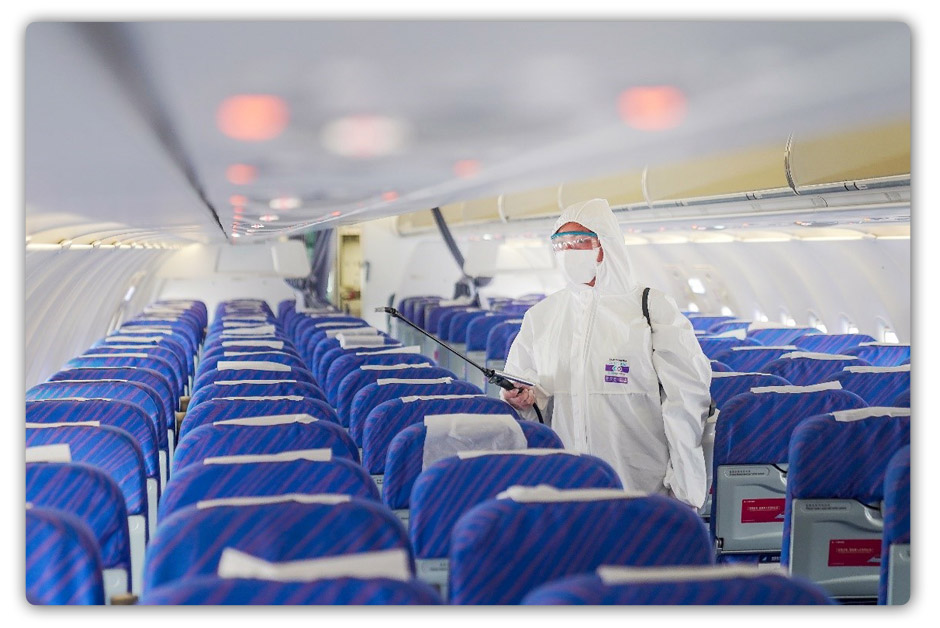 南航飞机上的空调系统中,再循环系统都安装有高效微粒气滤(HEPA High efficiency particulate air Filter),能够阻挡99.97%的细菌和病毒群颗粒的通过,还具有消毒、杀菌作用。航后清洁作业时要求使用消毒剂擦拭客舱、