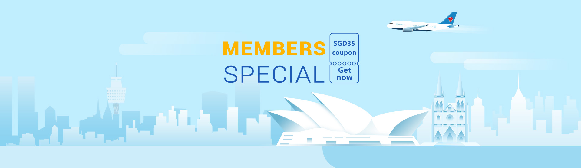 6. This SGD35 coupon can only be used when purchasing an international flight of SGD175 value or above from China Southern Airlines (excluding taxes and fees).