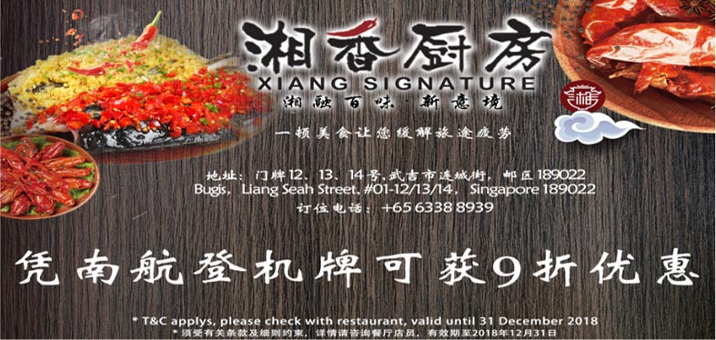 During the promotion period, China Southern Airlines passengers and Sky Pearl Club members can enjoy the following privileges by showing their boarding passes (departure/arrival in Singapore for the past 6 months) and valid identification documents: