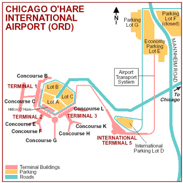 The airport lies on I-190. To reach I-190 from central Chicago, take I-90; from the north and south suburbs, take I-294; from the west suburbs, take I-88, then I-294.