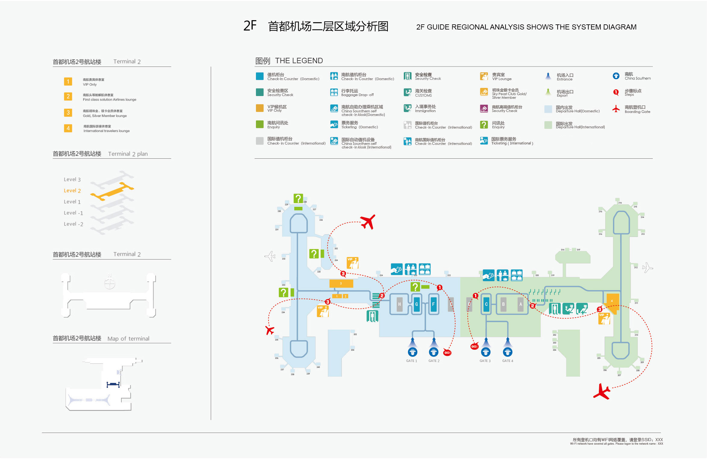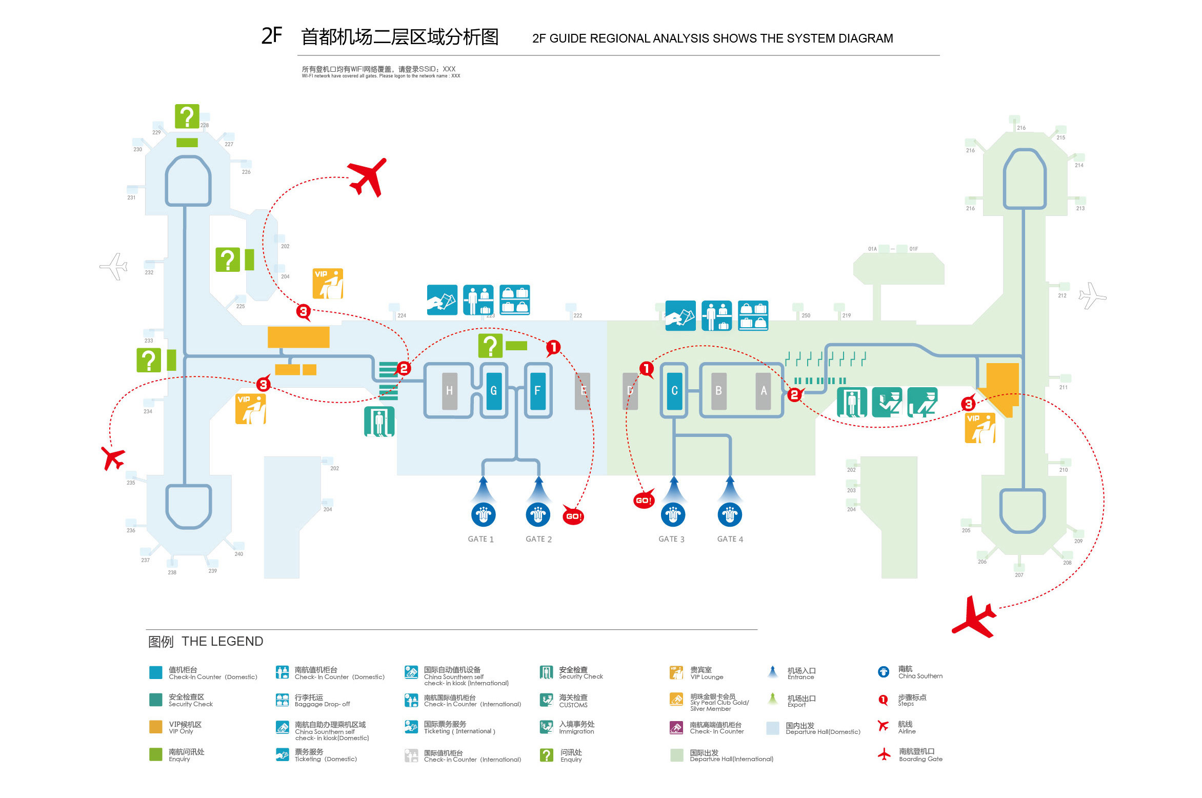 三层:国内、国际航空公司办公区域。设有旅客机场餐饮和购物区。