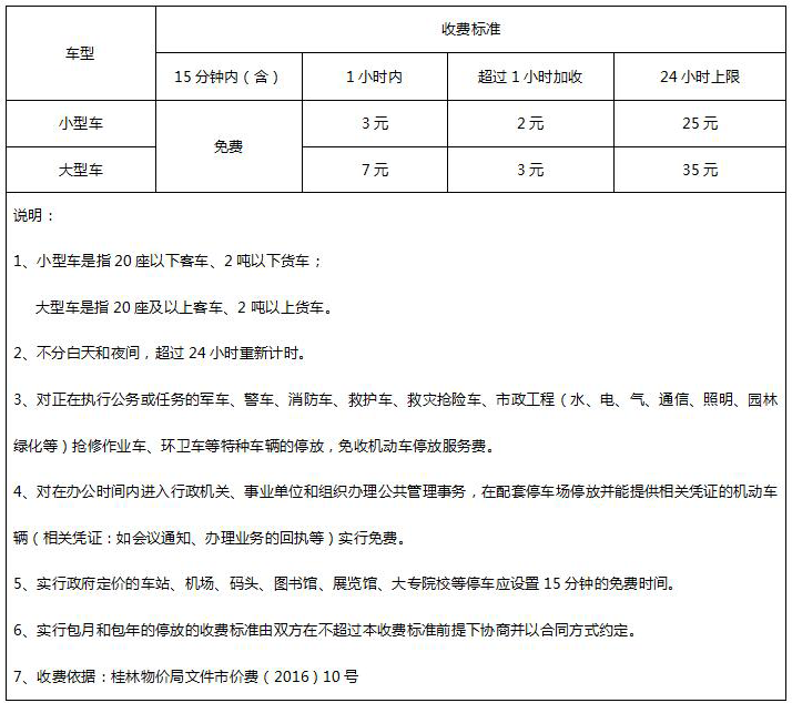 停车场收费标准