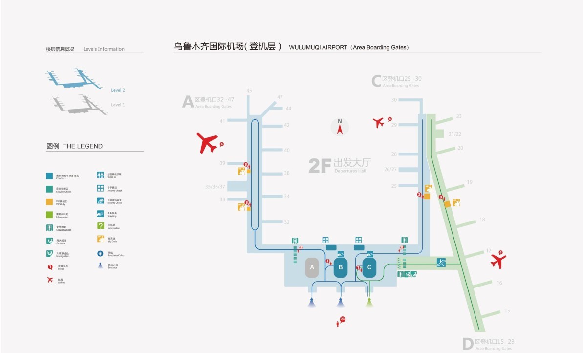 乌鲁木齐机场国内出发:航班预定始发时间前40分钟截止办理手续