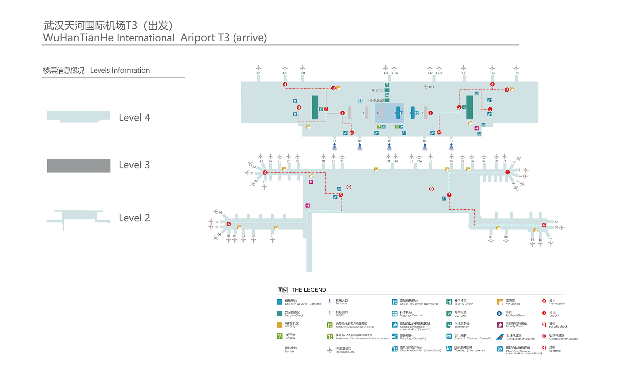 四层:国际出发、国内国际值机、国内安检。