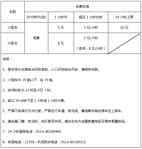 行李提取(Luggage reclaim):行李厅位于一楼,请根据电子显示牌的航班信息提醒到达相应的行李传送带领取行李;行李遗失或损坏,请到行李传送带北侧行李服务室查询,或拨打热线电话:0514-86100303。