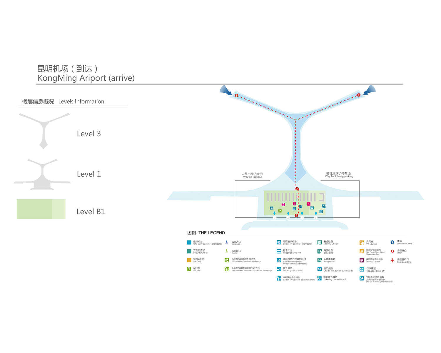 B2层:航站楼连接停车楼以及地铁车站的连接过厅及通道