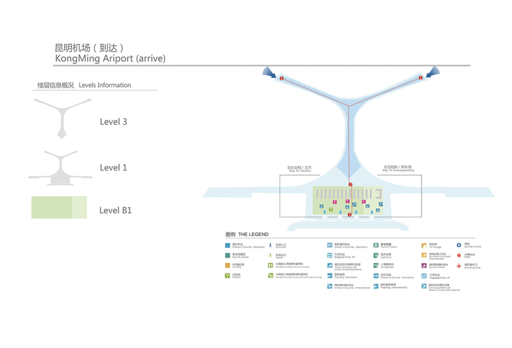 B1层:航站楼行李提取大厅、迎客大厅以及旅客到达车道边
