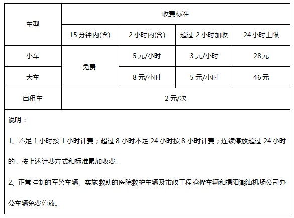 揭阳潮汕机场停车场位于机场航站楼正对面,出入口均有详细的指示牌,主要停放社会临时车辆及过夜车辆。