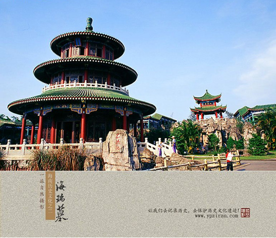 Tomb of Hairui is located in Binya Village 5 km west to Haikou City and was built in the seventeenth year of Ming Dynasty (1589). The town is 115 meters north to south and 41 meters east to west. The front of the tomb is three stone arches and stone carvings. The tomb is hexagon-shaped and the peak is conical. In front of the tomb, there is a 4-meter-high monument reading "presented by Nanjing Censorate Right Censor to Tai Fu and Zhong Jie Hai Gong", written by Xu Ziwei. There is an exhibition hall around.