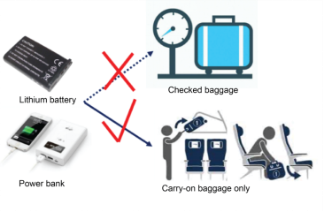 Spare lithium batteries and power banks can only be placed in carry-on baggage.