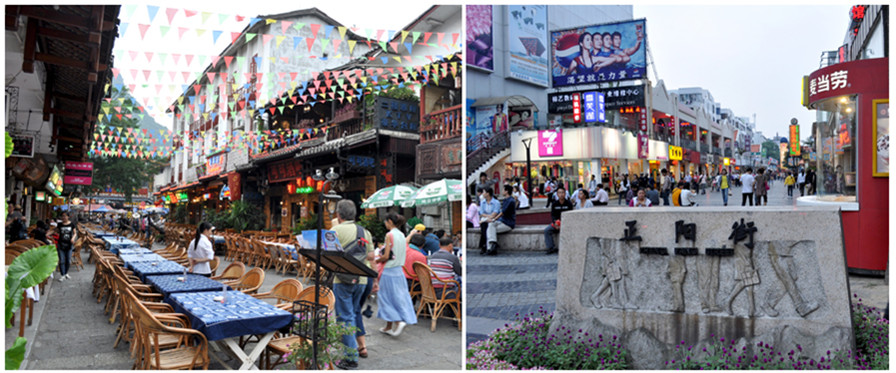 本區域位於桂林市市中心灕江之畔,其中有著名景點:象鼻山、杉湖、伏波山等。區域內包含市中心廣場、正陽路步行街、當地最大的購物中心——微笑堂、桂林百貨大樓等,購物非常便利。住宿類型以高檔酒店居多,住宿環境很好,適合經濟條件較好,喜歡購物,對住宿條件要求較高的人群。