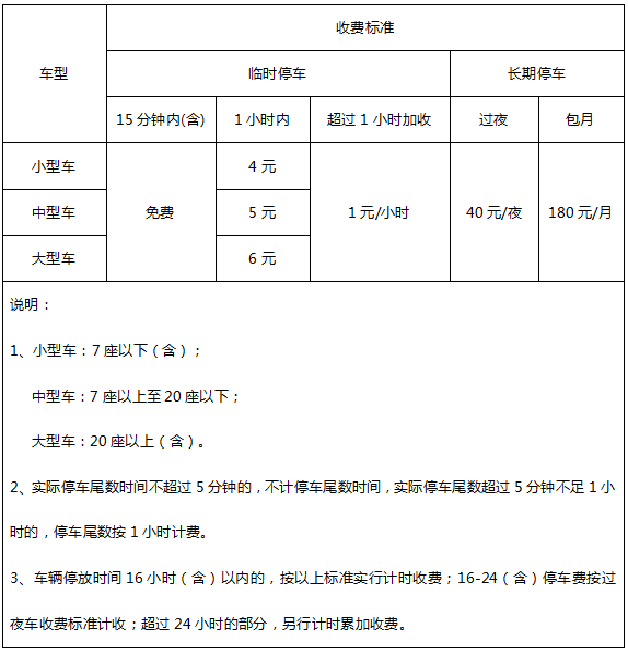停车场收费标准