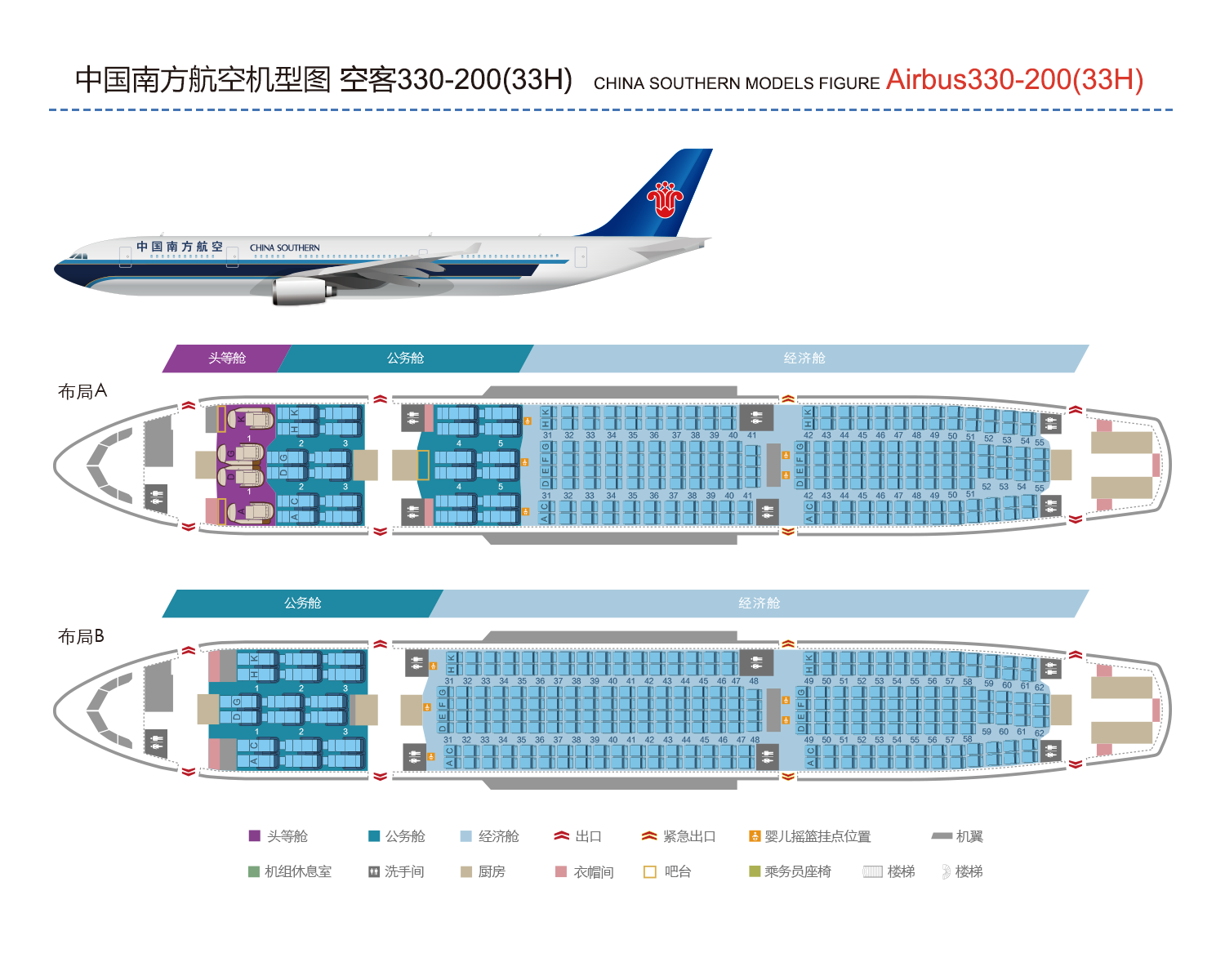 客舱布局及数据仅供参考,请以实际乘机时为准。